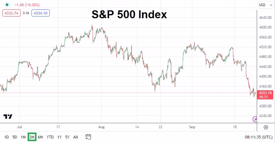 U.S equity indices have struggled recently and this should be viewed as a barometer of current behavioral sentiment. Concerns regarding higher Crude Oil prices, and talk of a growing U.S political crisis as a government shutdown is threatened (remember next year’s election is shadowing all spectacles in Washington D.C presently) highlight the nervous state of affairs. The USD has been stronger and gold has remained under pressure in recent trading. Risk adverse trading is proving rather flavorful for the moment.