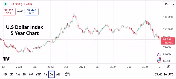 U.S Dollar Index Five Year Chart as of 27th June 2025