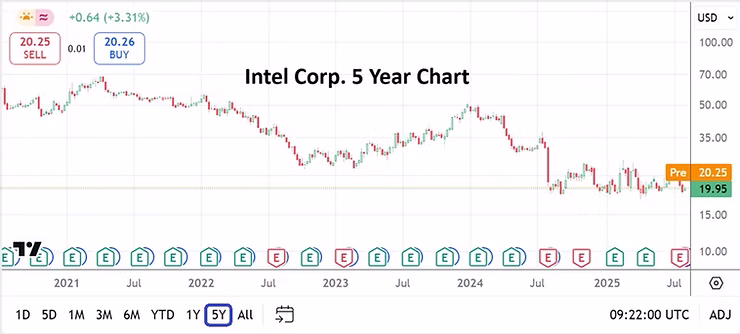 Intel Corp. Five Year Chart as of 11th August 2025