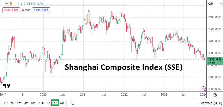 Wednesday, 17th of January, China Industrial Production and GDP – recent economic reports regarding the deflationary troubles the nation is facing have been loud. The industrial and growth numbers should be monitored. The Shanghai Composite Index (SSE) is trading near values last seen in May of 2020, this is not a good signal.