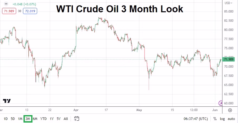 WTI Crude Oil Three Month Chart as of 4th of June 2023