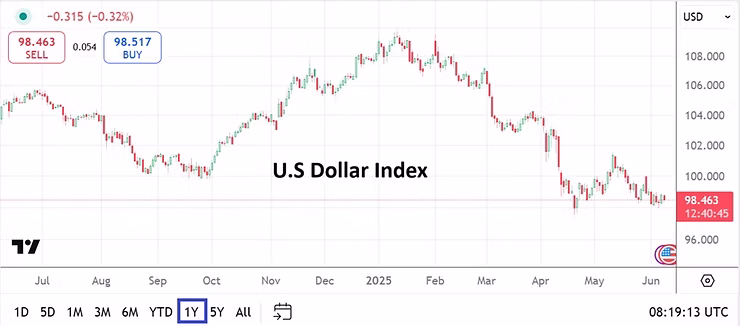 U.S Dollar Index One Year Chart as of 9th June 2025